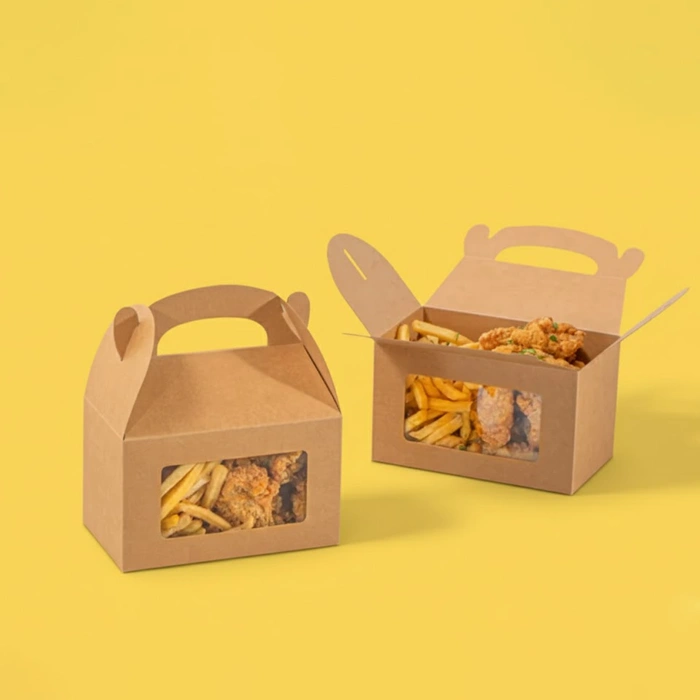 Gable lunch boxes are an attractive packaging choice for takeout meals, catering, and food delivery. Made from strong, food-grade, eco-friendly materials, our boxes are easy to assemble and include a sturdy built-in handle for easy carrying. Available in multiple custom sizes, including 9x6x6, 10x7x7, and 12x8x8 inches, with various style options to suit your brand or event. We offer custom designs, bulk and wholesale pricing, fast turnaround, free shipping, and a free quote. Order today and get reliable lunch packaging delivered to your door!